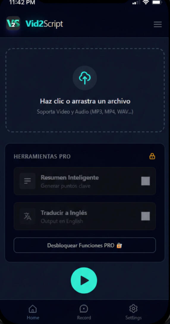 ¿Tienes una entrevista en otro idioma? Vid2Script la transcribe y la traduce al inglés automáticamente en un solo paso, ahorrándote el uso de traductores externos.